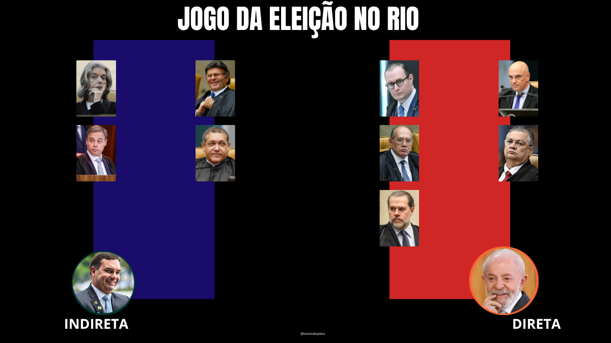 É tentador mapear as afinidades: a eleição indireta é o oxigênio do grupo de Flávio Bolsonaro, hoje no poder no Rio. A direta é o tapete vermelho para o favorito das pesquisas, Eduardo Paes, o candidato de Lula e autor da ação.